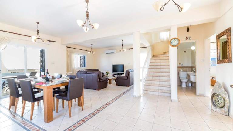 Die Villa Malama in Paralimni ist der perfekte Ort für einen entspannten und luxuriösen Urlaub. Mit einem eigenen Pool, einem Garten und Grillmöglichkeiten bietet die Villa alle Annehmlichkeiten, die Sie für einen unvergesslichen Aufenthalt benötigen. Die Nähe zum Strand Malama und dem Strand Trinity ermöglicht es Ihnen, die Schönheit der Küste zu genießen. Die Villa selbst ist geräumig und gut ausgestattet, mit klimatisierten Zimmern, einer voll ausgestatteten Küche und zwei Badezimmern. WLAN und kostenfreie Privatparkplätze sind ebenfalls vorhanden. Wenn Sie weitere Abenteuer erleben möchten, können Sie den Außenpool nutzen oder die nahegelegenen Strände Vrisoudia und Sirena Bay erkunden. Mit dem internationalen Flughafen Larnaka in der Nähe ist die Anreise zur Villa Malama ebenfalls bequem.