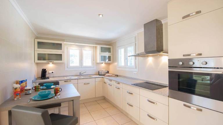 Die Villa bietet Platz für bis zu fünf Personen in ästhetisch gestalteten Schlafzimmern und enthält eine voll ausgestattete Küche. Die Unterkunft ist klimatisiert und bietet einen Poolblick von der Terrasse. Zusätzliche Einrichtungen umfassen Grillmöglichkeiten und Nichtraucherzimmer.
