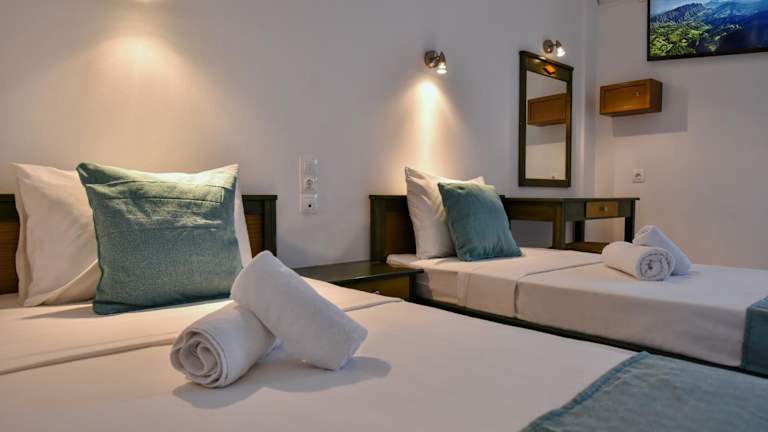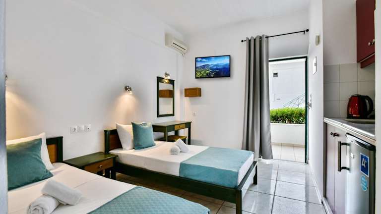 Die Zimmer sind mit einer Klimaanlage, einem Flachbild-TV sowie einem eigenen Badezimmer mit Dusche und Haartrockner ausgestattet. Des Weiteren gibt es einen Kühlschrank, eine Kaffeemaschine und einen Wasserkocher. Familien- und Nichtraucherzimmer sind ebenfalls vorhanden.