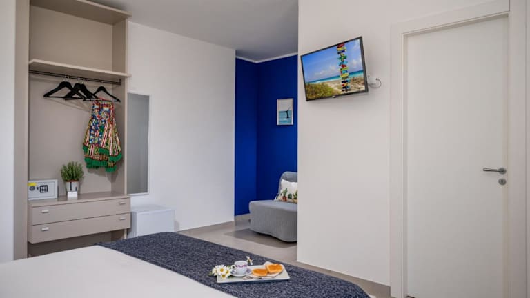 Die Unterkunft ist klimatisiert und umfasst eine voll ausgestattete Küche mit einem Essbereich. Zu den Annehmlichkeiten gehören ein Flachbild-TV, ein eigenes Badezimmer mit einem Bidet, kostenlosen Pflegeprodukten und einem Haartrockner. Weiterhin sind ein Kühlschrank, Geschirrspüler, Ofen, Kaffeemaschine und Wasserkocher vorhanden.