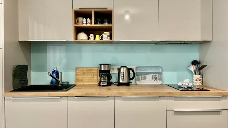 Das Appartement verfügt über ein Schlafzimmer, ein Wohnzimmer und eine voll ausgestattete Küche mit Kühlschrank und Kaffeemaschine. Es bietet ein Badezimmer mit Dusche und kostenlosen Pflegeprodukten sowie einen Fernseher. Die Unterkunft ist klimatisiert und bietet Stadtblick.