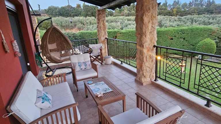 Die Villa Mariellie in Elaiokhórion ist eine klimatisierte Villa mit einer Terrasse, die Ihnen einen komfortablen und erholsamen Aufenthalt bietet. Die Unterkunft liegt nur wenige Gehminuten vom Strand entfernt und verfügt über kostenlose Privatparkplätze. Mit kostenfreiem WLAN, einem Essbereich und zwei voll ausgestatteten Küchen bietet die Villa alle Annehmlichkeiten für einen angenehmen Selbstversorgerurlaub. Das eigene Bad ist mit einer Badewanne ausgestattet und Handtücher sowie Bettwäsche werden gestellt. Am Strand stehen Ihnen private Liegestühle und Sonnenschirme zur Verfügung. Die Villa Mariellie ist nur 5 km von Nea Peramos und 35 km vom internationalen Flughafen Kavala entfernt.