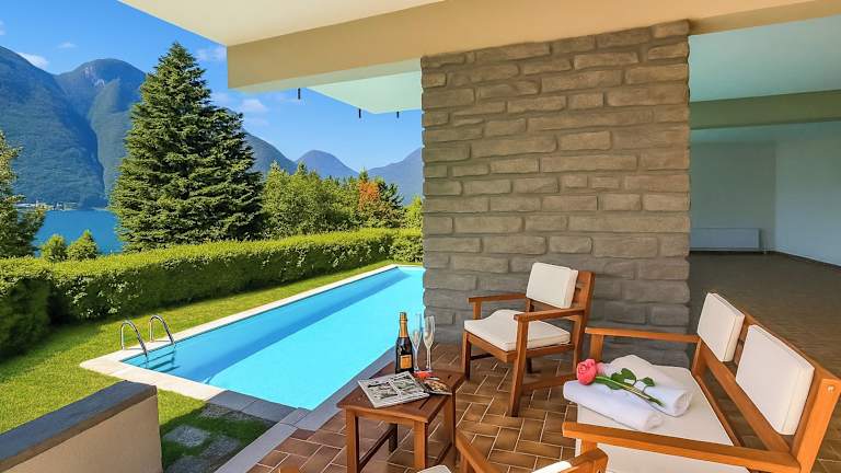Die Unterkunft Villa Marilyn bietet Übernachtungsmöglichkeiten mit kostenlosem WLAN. Die Villa verfügt über einen eigenen Pool, einen Garten und einen kostenlosen Privatparkplatz. Eine Terrasse mit Seeblick ist ebenfalls vorhanden.