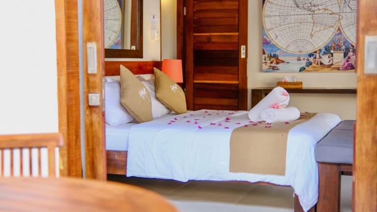 Die Villa Marina liegt auf der Insel Gili Air und ist nur 5 km von Gili Trawangan entfernt. Die Lage bietet eine ruhige und entspannte Atmosphäre, ideal für einen erholsamen Urlaub. In der Umgebung gibt es viele Möglichkeiten zum Schnorcheln und Tauchen, und Fahrräder können gemietet werden, um die Insel zu erkunden. Der internationale Flughafen Lombok ist etwa 49 km entfernt.