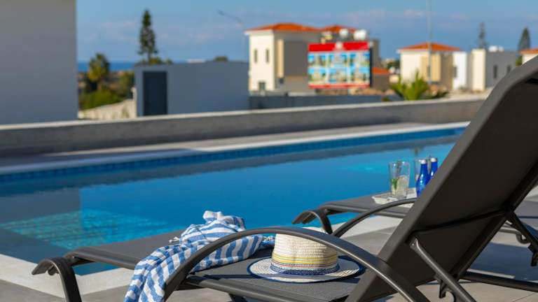 Die Unterkunft befindet sich in Peyia, nur 500 Meter von der Coral Bay entfernt. Der nächstgelegene Flughafen ist der Flughafen Paphos, welcher sich 20 km von der Villa entfernt befindet. Sehenswürdigkeiten wie die Königsgräber von Nea Paphos sind 11 km entfernt.