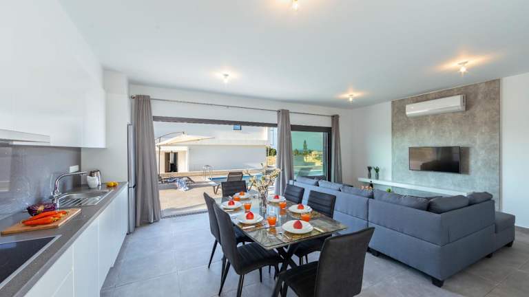 Die Villa Marlene bietet eine umfassende Ausstattung mit 3 Schlafzimmern, einem Flachbild-TV, einem Essbereich, einer Küche mit Kühlschrank und einem Wohnzimmer. Handtücher und Bettwäsche werden bereitgestellt. Die Unterkunft umfasst auch Elemente zur Entspannung wie einen Außenpool und Grillmöglichkeiten.