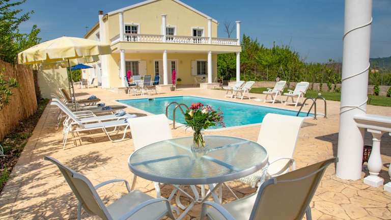 Die Villa Martini in Ermones ist der perfekte Ort für einen entspannten Urlaub. Mit einem eigenen Pool, einem schönen Garten und Grillmöglichkeiten bietet die Villa alle Annehmlichkeiten, die Sie für einen angenehmen Aufenthalt benötigen. Genießen Sie den Bergblick von der Terrasse und entspannen Sie sich im geräumigen Wohnzimmer. Die Villa verfügt über 5 Schlafzimmer und 3 Badezimmer, die alle modern und komfortabel eingerichtet sind. WLAN und kostenfreie Privatparkplätze stehen Ihnen ebenfalls zur Verfügung. Entdecken Sie die nahegelegenen Sehenswürdigkeiten wie die Panagia Vlahernon Kirche und die Ionio Universität. Der internationale Flughafen Korfu ist nur 13 km entfernt.