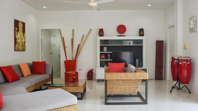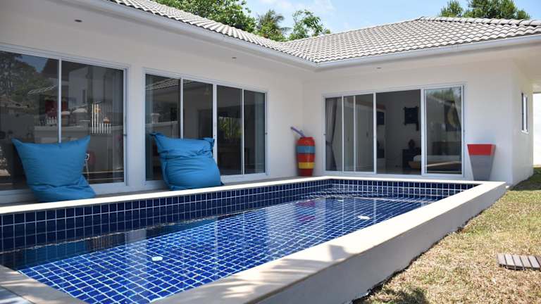 Die Villa verfügt über 3 Schlafzimmer, eine Küche mit Kühlschrank und Mikrowelle, einen Flachbild-TV, einen Sitzbereich sowie 3 Badezimmer mit Dusche. Handtücher und Bettwäsche werden bereitgestellt.