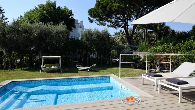 Die Villa Massa Residence ist ein traumhaftes Ferienhaus in Sant'Agnello, nur 400 m vom Strand Spiaggia La Marinella entfernt. Genießen Sie den luxuriösen Komfort und die Privatsphäre dieses Hauses, das mit einem eigenen Pool, einem Whirlpool und einem schönen Garten ausgestattet ist. Das Ferienhaus bietet 4 geräumige Schlafzimmer, eine voll ausgestattete Küche und 4 Badezimmer. WLAN und Parkplätze stehen Ihnen kostenlos zur Verfügung. Entdecken Sie die nahegelegenen Strände und den internationalen Flughafen Neapel, der nur 48 km entfernt liegt.