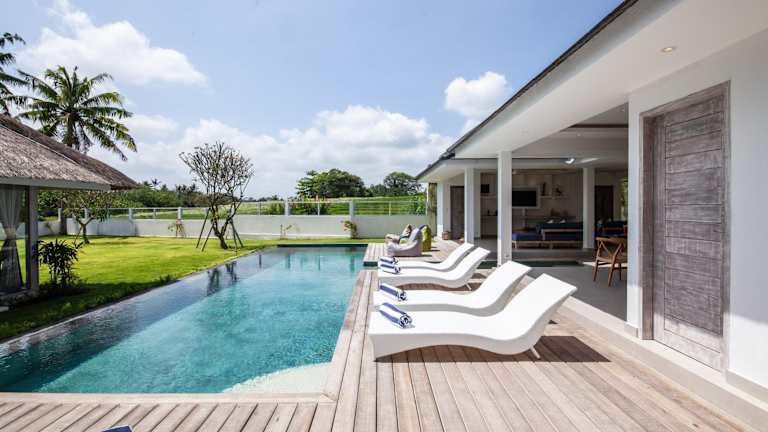 Die Villa Matahari Munggu 5BR befindet sich in Canggu und bietet eine günstige Lage für Strandliebhaber. Die Strände Seseh, Pererenan und Echo sind nur wenige Minuten entfernt und laden zum Sonnenbaden und Entspannen ein. Die Villa liegt auch in der Nähe des internationalen Flughafens Denpasar, der bequem mit einem kostenpflichtigen Flughafentransfer erreicht werden kann.