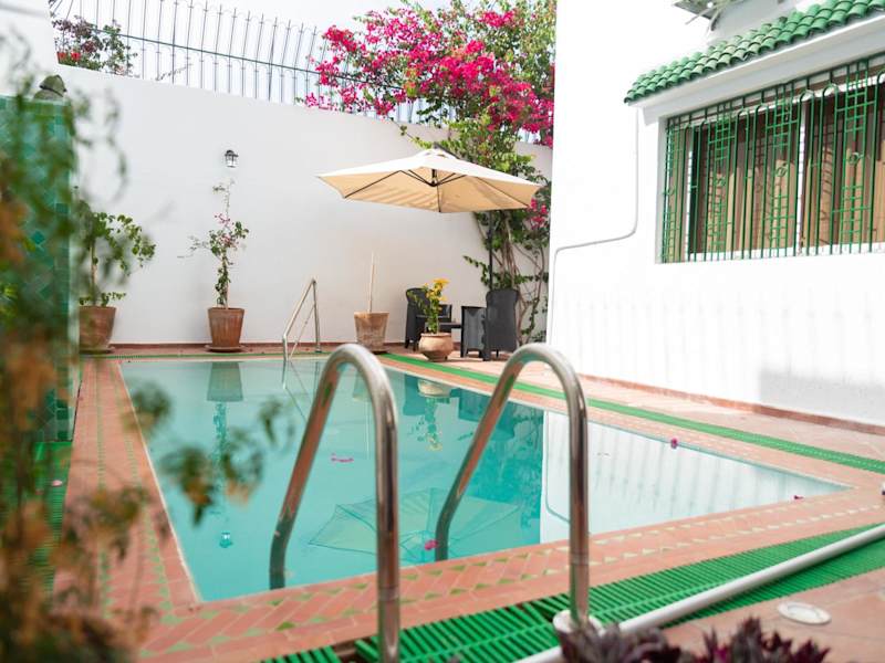 Entdecken Sie die VILLA MATI Maison D'hôtes in Tétouan, eine charmante Unterkunft mit klimatisierten Zimmern und kostenfreiem WLAN. Hier können Sie sich in einem Garten mit Terrasse entspannen und die schöne Umgebung genießen. Die Zimmer sind komfortabel eingerichtet und verfügen über einen Flachbild-TV sowie ein eigenes Badezimmer mit kostenfreien Pflegeprodukten. Einige Zimmer bieten zudem einen Sitzbereich oder einen Balkon. Beginnen Sie Ihren Tag mit einem köstlichen kontinentalen oder vegetarischen Frühstück. Der nächstgelegene Flughafen, Sania Ramel, ist nur wenige Schritte von der Unterkunft entfernt.