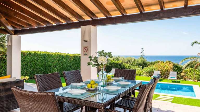 Die Villa verfügt über 3 Schlafzimmer und 2 Badezimmer sowie über Möbelierungen wie Bettwäsche und Handtücher. Zur Ausstattung gehören ein TV und eine voll ausgestattete Küche. Die Terrasse bietet einen Gartenblick.