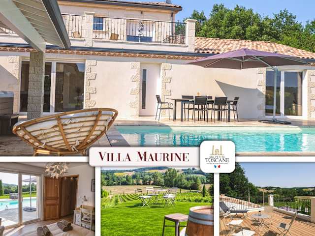 Die Villa Maurine bietet ein Ferienhaus mit einem saisonalen Außenpool, einem Garten und einer Terrasse. Des Weiteren stehen den Gästen kostenloses WLAN sowie Zugang zu einem eigenen Pool und kostenlosen Privatparkplätzen zur Verfügung.