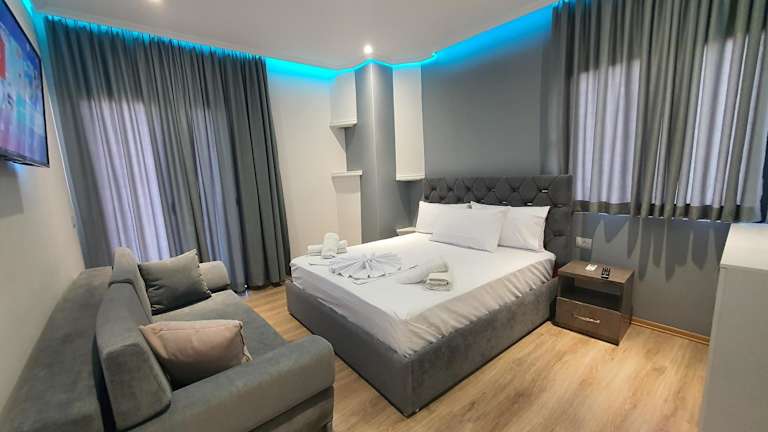 Die Villa Mehmeti befindet sich in Saranda, nur 1,8 km vom Stadtstrand entfernt. In der Umgebung finden Sie auch den Strand Maestral und den Strand La Petite, die jeweils etwa 1,8 km bzw. 1,9 km entfernt sind. Die Villa liegt in einer ruhigen Gegend und bietet einen einfachen Zugang zu verschiedenen Sehenswürdigkeiten und Aktivitäten in der Umgebung. Der VIP-Strand ist nur 2,6 km entfernt und der Nationalpark Butrint erreichen Sie nach einer kurzen Fahrt von 16 km.