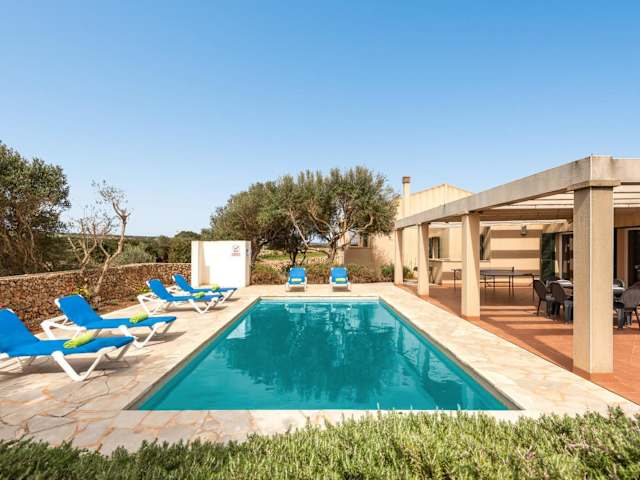 Die Villa Menorca Flomertor 2 by Mauter Villas in Cala en Blanes ist eine ideale Unterkunft für einen entspannten und komfortablen Urlaub auf Menorca. Mit einem schönen Garten, einem ganzjährig geöffneten Außenpool und einer Terrasse bietet die Villa alles, was man für einen erholsamen Aufenthalt benötigt. Die Villa verfügt über 3 Schlafzimmer, ein Wohnzimmer und eine voll ausgestattete Küche. Zudem gibt es kostenfreies WLAN und kostenlose Privatparkplätze. Die Lage der Villa ist ideal, da der Strand Cala'n Blanes nur 1,4 km entfernt ist und der Strand Cala'n Brut nach 1,7 km erreicht werden kann.