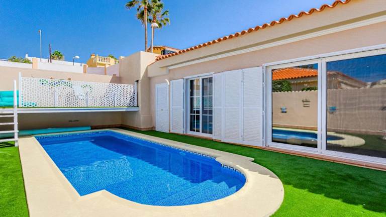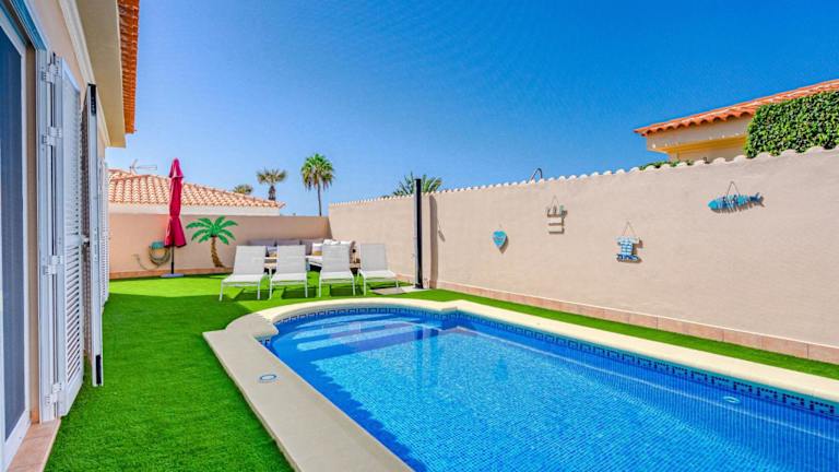 Die Villa verfügt über drei Schlafzimmer und zwei Badezimmer. Sie ist ausgestattet mit einem Flachbild-TV, einer gut ausgestatteten Küche, die einen Kühlschrank, einen Geschirrspüler und einen Ofen umfasst, sowie einer Veranda/Patio mit Poolblick. Ein Babybett steht kostenfrei zur Verfügung.