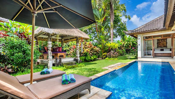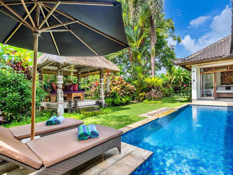 Die Villa Mimpi verfügt über zwei Schlafzimmer, ein Wohnzimmer und eine voll ausgestattete Küche. Jedes der beiden Badezimmer ist mit einer Dusche und einer Badewanne ausgestattet. Die Villa bietet außerdem einen eigenen Pool und einen Garten, in dem Sie sich entspannen und die Privatsphäre genießen können. Handtücher und Bettwäsche werden gestellt, und das kostenfreie WLAN und die Klimaanlage sorgen für zusätzlichen Komfort während Ihres Aufenthalts.
