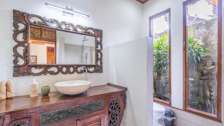 Die Villa Mimpi bietet Ihnen einen Innenpool, in dem Sie sich entspannen und erfrischen können. Erkunden Sie die Sehenswürdigkeiten von Ubud, wie den Palast von Ubud und das Kunstmuseum Neka, die in der Nähe der Villa liegen. Das freundliche Personal an der Rezeption steht Ihnen rund um die Uhr zur Verfügung und hilft Ihnen gerne bei der Organisation von Aktivitäten und Ausflügen in der Umgebung. Der internationale Flughafen Denpasar ist nur 36 km entfernt und die Villa bietet einen kostenpflichtigen Flughafentransfer für Ihren Komfort.