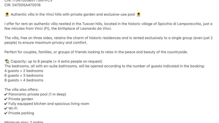 Die Villa Minghetti bietet eine Unterkunft mit einem saisonalen Außenpool sowie einem eigenen Pool und Garten. Die Unterkunft ist privat und wird von einem Gastgeber geführt. Es sind keine Feiern wie Junggesellenabschiede erlaubt. Es gelten spezielle Check-in Zeiten, und es muss im Voraus über die Ankunftszeit informiert werden. Haustiere sind auf Anfrage erlaubt, können jedoch Gebühren verursachen.