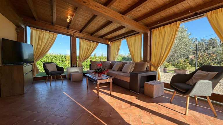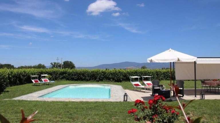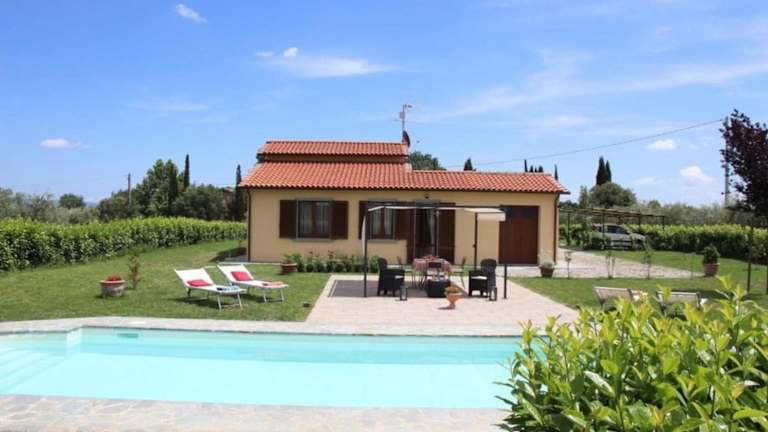 Die Villa Mira in Cortona ist eine wunderschöne Unterkunft mit einem eigenen Pool und einem Garten, die Ihnen einen erholsamen Aufenthalt inmitten der Natur bietet. Genießen Sie den atemberaubenden Blick auf die Umgebung und nutzen Sie die Grillmöglichkeiten, um ein köstliches Essen im Freien zuzubereiten. Das Ferienhaus verfügt über komfortable Zimmer, eine voll ausgestattete Küche und ein modernes Badezimmer. Entspannen Sie sich am saisonalen Außenpool oder auf der Sonnenterrasse. Die Villa Mira bietet Ihnen alles, was Sie für einen unvergesslichen Urlaub in Cortona benötigen.