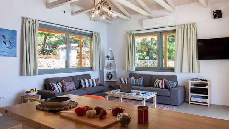 Die Villa Mirtes verfügt über 3 geräumige Schlafzimmer und 3 komfortable Badezimmer. Die Zimmer sind mit hochwertiger Bettwäsche und Handtüchern ausgestattet und bieten einen herrlichen Meerblick. Die Villa verfügt auch über einen Flachbild-Kabel-TV, einen Essbereich und eine voll ausgestattete Küche, in der Sie Ihre eigenen Mahlzeiten zubereiten können. Auf der Terrasse können Sie den Blick auf das Meer genießen und sich entspannen.