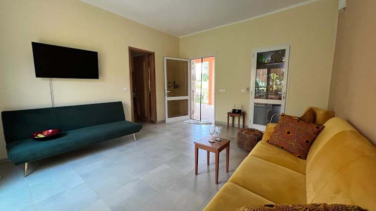 Die Unterkunft befindet sich in M'bour, 400 m vom Strand Plage Mbour und 5,7 km vom Golfplatz Golf De Saly entfernt. Nahegelegene Sehenswürdigkeiten sind das Naturschutzgebiet Popenguine, das 30 km entfernt liegt, sowie der Accrobaobab Adventure Park in 17 km Entfernung. Der Flughafen Dakar-Blaise Diagne ist der nächstgelegene Flughafen und befindet sich 27 km von der Unterkunft entfernt.