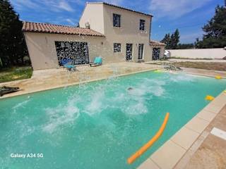 Die Villa moderne avec piscine bietet Übernachtungsmöglichkeiten mit kostenlosem WLAN und einem Flachbild-TV. Zur Ausstattung gehören ein eigener Pool, ein Garten sowie ein kostenloser Privatparkplatz. Die Villa ist klimatisiert und verfügt über 4 separate Schlafzimmer.