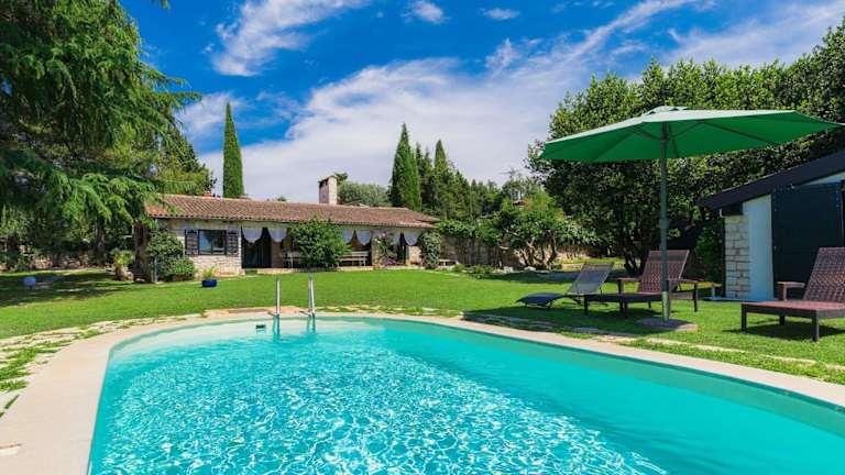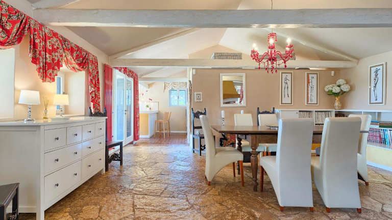 Die Villa umfasst eine gut ausgestattete Küche, die über Kühlschrank, Geschirrspüler und Ofen verfügt. Zusätzlich stehen den Gästen vier Badezimmer mit einem Bidet zur Verfügung. Satellitenfernsehen ist ebenfalls vorhanden.