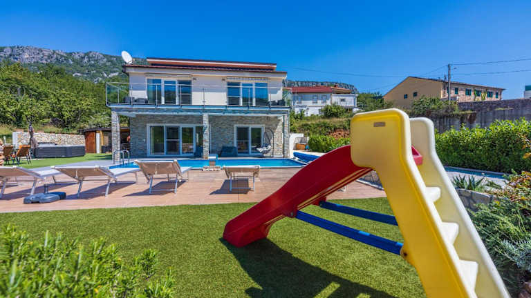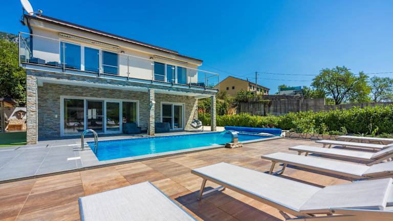 Die Villa Monte Adria ist ein wunderschönes Ferienhaus mit Meerblick, das Ihnen einen entspannten und komfortablen Aufenthalt bietet. Mit einem Außenpool, einem Garten und einer Gemeinschaftslounge können Sie die warmen Tage genießen und sich entspannen. Die Villa verfügt über 4 Schlafzimmer, eine voll ausgestattete Küche und 3 Badezimmer, die Ihnen einen angenehmen Aufenthalt ermöglichen. Der Whirlpool ist ein zusätzliches Highlight, das Ihnen pure Entspannung bietet. Nutzen Sie die Terrasse und den Kinderspielplatz für zusätzlichen Komfort. Die Villa Monte Adria bietet Ihnen auch die Möglichkeit zum Angeln und Radfahren in der Umgebung. Entdecken Sie die Schönheit der kroatischen Küste und besuchen Sie das See- und Geschichtsmuseum des kroatischen Küstenlandes. Der Flughafen Rijeka liegt in der Nähe und ermöglicht Ihnen eine bequeme Anreise.