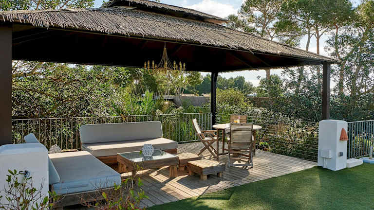Die Villa Muntblanc Ibiza bietet Ihnen einen Außenpool, in dem Sie sich an warmen Tagen erfrischen können. Entspannen Sie im Whirlpool und genießen Sie die Sonne auf der Sonnenterrasse. Ein Grill steht Ihnen zur Verfügung, um gemütliche Abende im Freien zu verbringen. Die Lage der Villa ermöglicht es Ihnen auch, die umliegenden Strände zu erkunden und Wassersportaktivitäten nachzugehen.