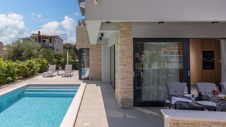 Die Unterkunft Villa Nadja ZadarVillas bietet eine Terrasse mit Meer- und Bergblick, einen Außenpool sowie Sauna und Whirlpool. Die Villa verfügt über einen eigenen Pool und einen Garten. Ein kostenloser Privatparkplatz steht zur Verfügung. Es sind keine Feiern wie Junggesellenabschiede erlaubt und das Mindestalter für den Check-in liegt bei 18 Jahren.