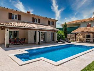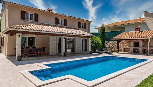 Entspannen Sie am eigenen beheizten Pool und genießen Sie die Sonne auf der Terrasse. Die Villa bietet auch einen Kinderspielplatz und die Möglichkeit, die Umgebung mit dem Fahrrad zu erkunden. Besuchen Sie die nahe gelegenen Burgen Pazin, Morosini-Grimani und Dvigrad und entdecken Sie die Geschichte und Kultur der Region.