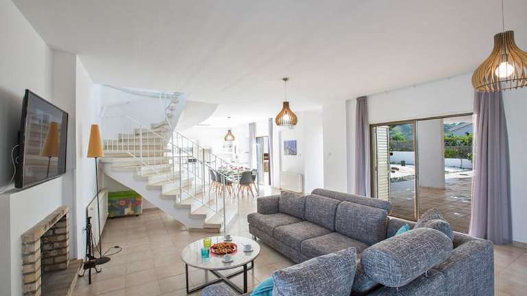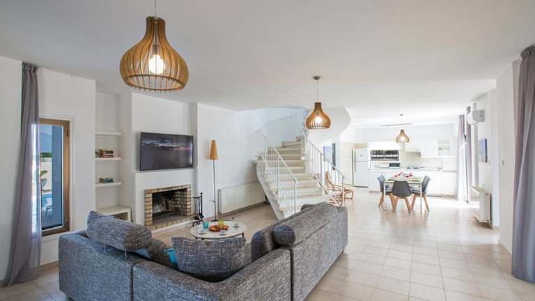 Die Villa Nepou verfügt über 4 Schlafzimmer und 4 Badezimmer, die Platz für eine große Gruppe oder eine Familie bieten. Die Zimmer sind komfortabel eingerichtet und mit Sat-TV ausgestattet. Die voll ausgestattete Küche ermöglicht es Ihnen, Ihre eigenen Mahlzeiten zuzubereiten und auf dem Balkon mit Meerblick zu genießen. Bettwäsche und Handtücher werden gestellt, und kostenfreies WLAN ist in der gesamten Villa verfügbar.