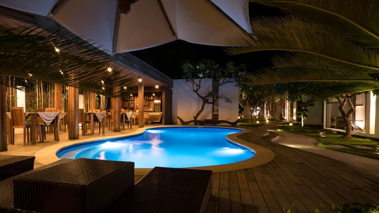 Die Villa Nero liegt auf der paradiesischen Insel Gili Trawangan. Der Strand ist nur etwa 400 m entfernt und lädt zum Entspannen und Sonnenbaden ein. Mit dem Schnellboot erreichen Sie in nur 15 Minuten den Hafen Bangsal und von dort aus ist der internationale Flughafen Lombok in weiteren 90 Autominuten erreichbar. Ein Flughafentransfer kann gegen Aufpreis arrangiert werden.