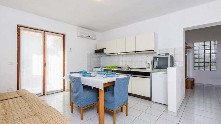 Die Apartments Nikola bieten komfortable Unterkünfte mit eigener Küche in Medulin. Die Apartments verfügen über Annehmlichkeiten wie Klimaanlage, TV und eine gut ausgestattete Küche. Die Lage ist ruhig und dennoch in der Nähe von Sehenswürdigkeiten wie der archäologischen Stätte Vižula und dem Sandstrand Bijeca. WLAN ist verfügbar und es gibt einen schönen Garten und einen Spielplatz. Parkplätze stehen gegen Gebühr zur Verfügung. Das Frühstücksbuffet bietet eine reichhaltige Auswahl. Für Freizeitaktivitäten stehen Tischtennis, Billard und Darts zur Verfügung. Die Zimmer sind klimatisiert und verfügen über einen Balkon oder eine Terrasse.