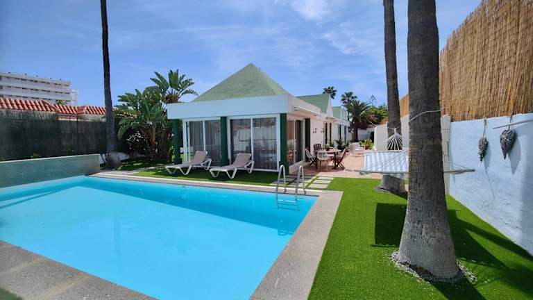 Die Villa Nuria befindet sich in Playa del Inglés, 800 m vom Strand Playa del Inglés entfernt und 400 m vom Einkaufszentrum Yumbo Centrum. Der Flughafen Gran Canaria liegt 28 km von der Unterkunft entfernt.