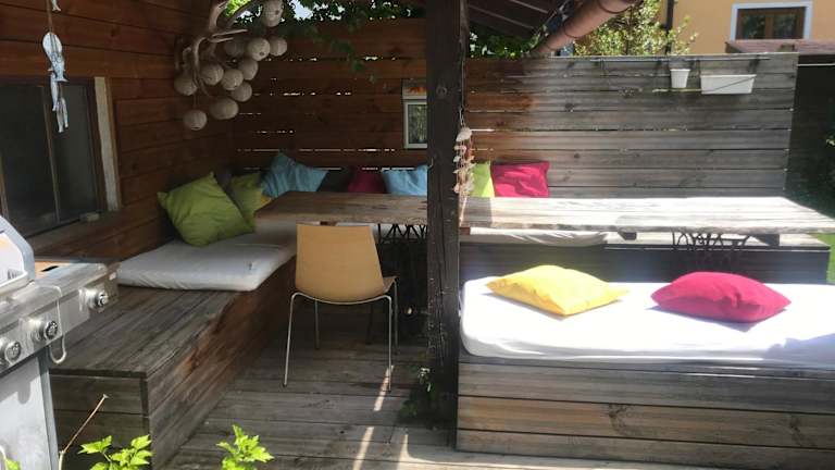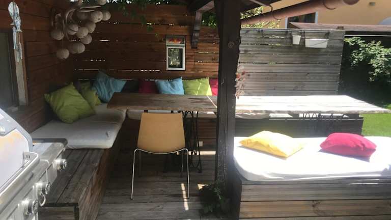 Die Villa Nussbaum verfügt über eine Terrasse, auf der Sie entspannen und die umliegende Natur genießen können. In der Nähe des Apartments gibt es auch Grillmöglichkeiten. Wenn Sie lieber auswärts essen möchten, finden Sie in der Umgebung verschiedene Restaurants und Cafés, in denen Sie lokale Spezialitäten probieren können.