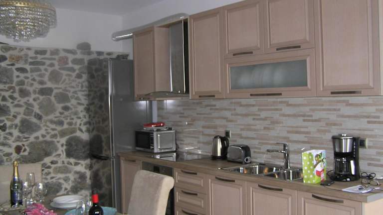 Die Villa Olga verfügt über zwei klimatisierte Schlafzimmer, die für eine angenehme Nachtruhe sorgen. Das Wohnzimmer ist gemütlich eingerichtet und lädt zum Entspannen ein. Die voll ausgestattete Küche bietet alle Annehmlichkeiten, die Sie für die Zubereitung Ihrer Mahlzeiten benötigen, einschließlich eines Kühlschranks. Das Badezimmer ist mit einer Dusche und einem Haartrockner ausgestattet. Ein Flachbild-Kabel-TV steht ebenfalls zur Verfügung, um Ihnen Unterhaltung zu bieten.