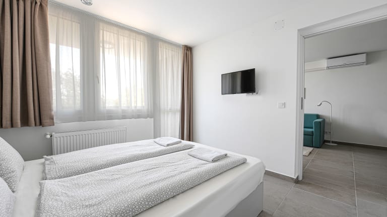 Die Villa Oliver 1 Hévíz bietet moderne Wohneinheiten mit kostenlosem WLAN, Klimaanlage sowie einem Garten und einer Terrasse zur Entspannung. Die Unterkunft verfügt über Nichtraucherzimmer und ist für Familien geeignet. Check-in ist ab 15:00 Uhr bis 23:30 Uhr möglich, der Check-out erfolgt zwischen 08:00 Uhr und 10:00 Uhr. Es gibt besondere Richtlinien für Buchungen ab 3 Zimmern. Haustiere sind nicht gestattet und Junggesellen- oder Junggesellinnenabschiede sind nicht erlaubt.