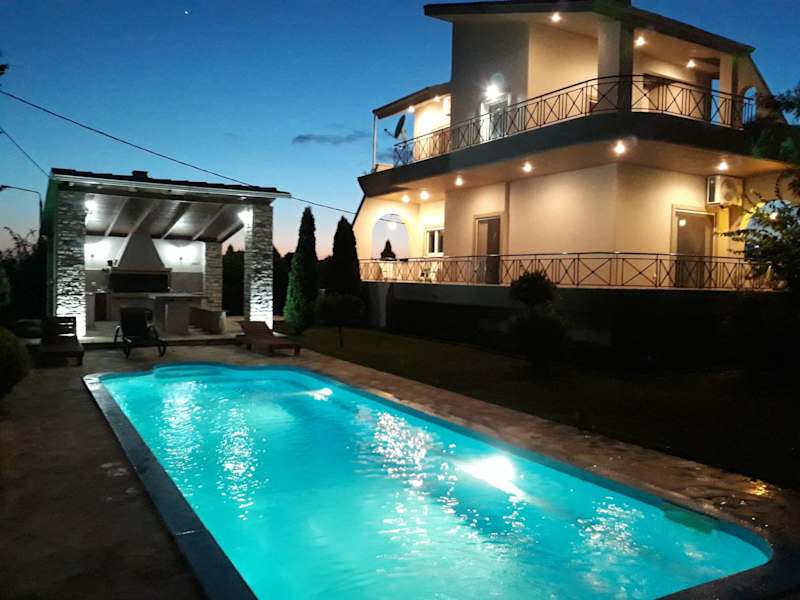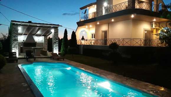 Die Villa Oneiro bietet einen Außenpool, in dem Sie an warmen Tagen eine erfrischende Abkühlung genießen können. Der Garten und der Kinderspielplatz laden zum Entspannen und Spielen ein. Nutzen Sie auch die Nähe zu Nikopolis und dem Wald Lekatsa, um Wanderungen und Ausflüge in die Natur zu unternehmen.