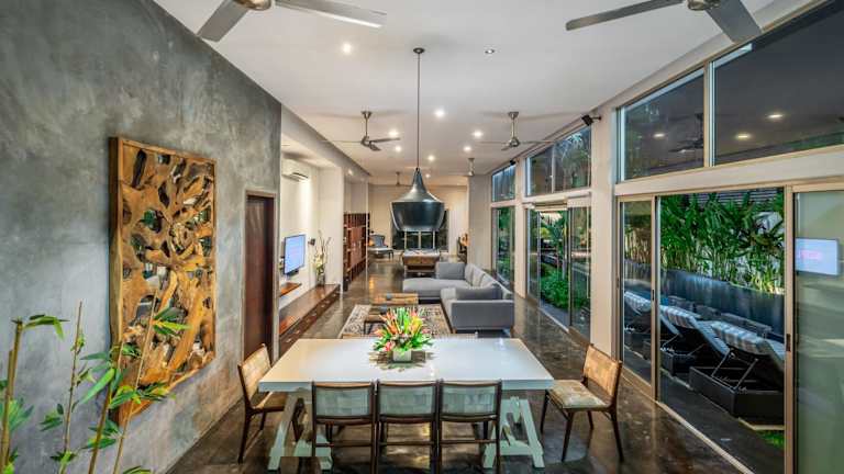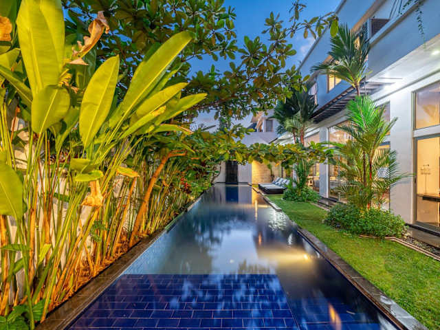 Die Villa Onyx in Seminyak ist eine ideale Unterkunft für Ihren Aufenthalt auf Bali. Sie bietet einen eigenen Pool, einen Garten und kostenfreies WLAN. Mit 4 Schlafzimmern, einem Wohnzimmer und einer voll ausgestatteten Küche bietet die Villa ausreichend Platz für Familien oder Gruppen. Die Nähe zu beliebten Stränden und Sehenswürdigkeiten macht sie zu einem perfekten Ausgangspunkt, um die Umgebung zu erkunden.