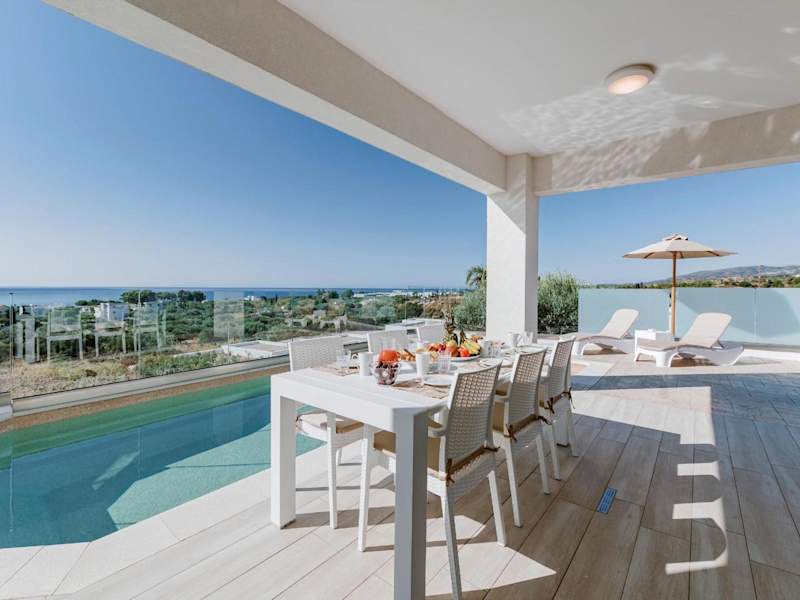 Die Villa Oriens ist eine klimatisierte Unterkunft, die mit einem saisonalen Außenpool, einem Garten und einer Terrasse ausgestattet ist. Die Villa bietet kostenfreies WLAN sowie Übernachtungsmöglichkeiten für Gäste. Sie verfügt über 3 Schlafzimmer, ein Wohnzimmer und eine voll ausgestattete Küche. Die Unterkunft bietet einen Grillbereich zur Nutzung durch die Gäste.