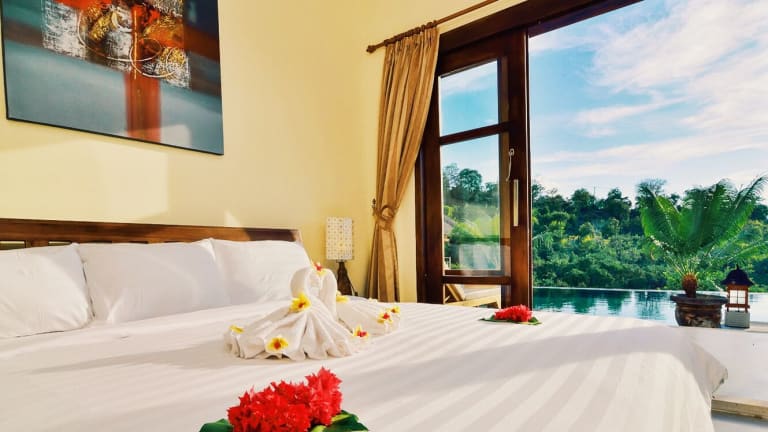 Die Villa Oscar liegt in Temukus und bietet Ihnen einen wunderschönen Meerblick. Der Strand Lotus ist nur 2,6 km entfernt. Die Unterkunft verfügt über eine Terrasse, auf der Sie entspannen können. In der Umgebung können Sie verschiedene Aktivitäten wie Radfahren und Wandern unternehmen. Der internationale Flughafen Denpasar ist 92 km von der Villa entfernt. Ein kostenpflichtiger Flughafentransfer wird angeboten.