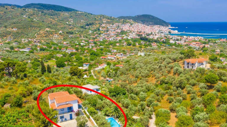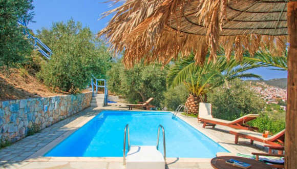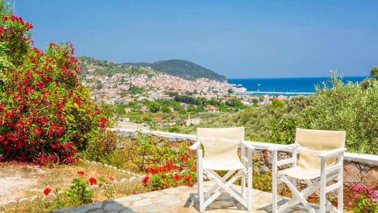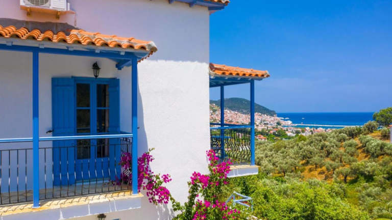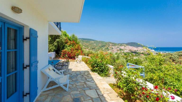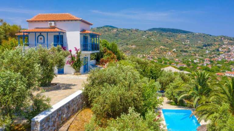 Die Villa Ourania liegt in Skopelos-Stadt und bietet einen atemberaubenden Blick auf das Meer. Die Unterkunft befindet sich in der Nähe des Hafens, so dass Sie bequem zu Fuß dorthin gelangen können. Die Umgebung bietet viele Möglichkeiten zum Entdecken und Erkunden. Der Flughafen Skiathos ist ebenfalls gut erreichbar und ermöglicht eine einfache Anreise zur Villa.