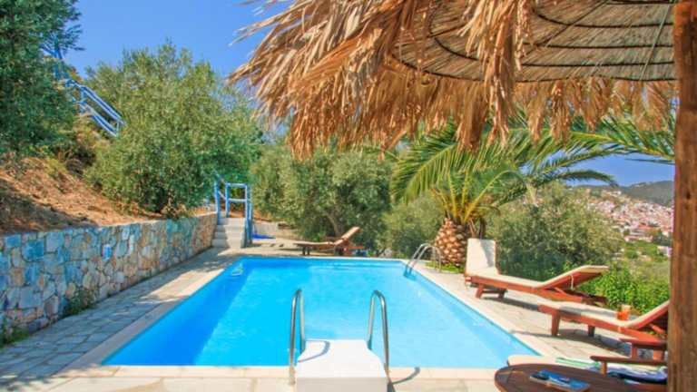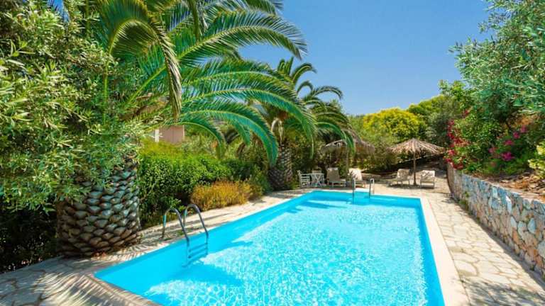 In der Villa Ourania können Sie sich im eigenen Pool entspannen und den Garten genießen. Die Umgebung bietet viele Möglichkeiten für Aktivitäten im Freien wie Wandern, Radfahren und Wassersport. Erkunden Sie die malerischen Strände und Buchten der Insel oder machen Sie einen Ausflug in die umliegenden Dörfer.