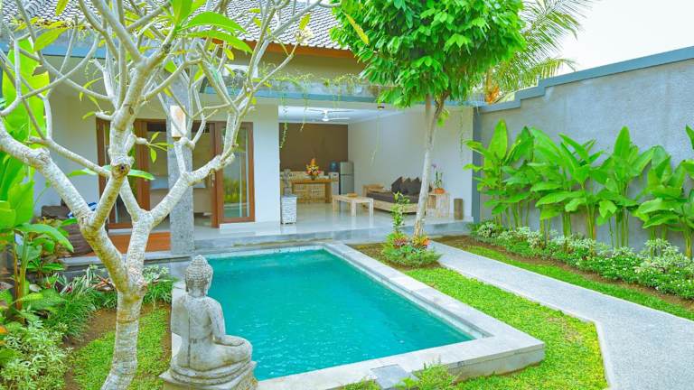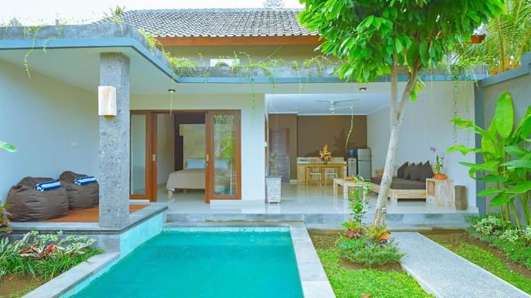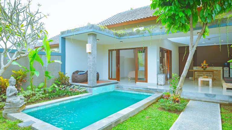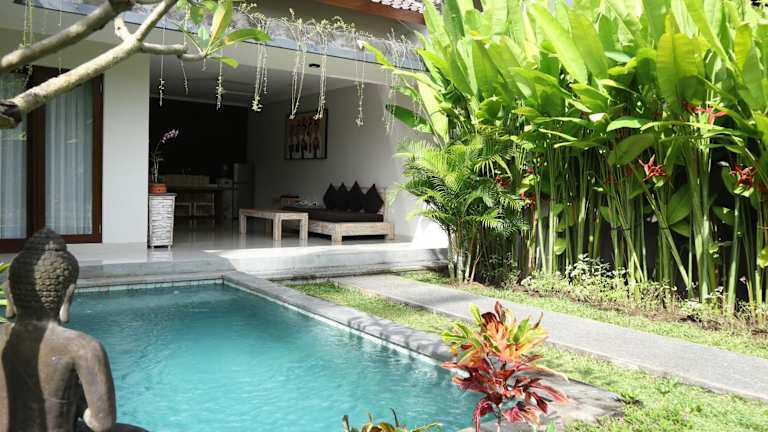 In der Villa Padma können Sie den Außenpool nutzen, um sich abzukühlen und zu entspannen. Darüber hinaus bietet die Umgebung von Ubud eine Vielzahl von Aktivitäten und Sehenswürdigkeiten, die Sie erkunden können. Besuchen Sie den Affenwald von Ubud, um die einheimische Tierwelt zu sehen, oder erkunden Sie den Markt von Ubud, um lokale Produkte und Kunsthandwerk zu entdecken.