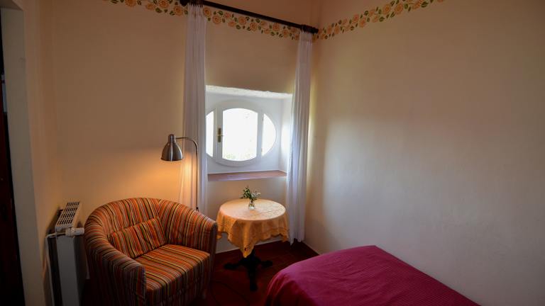 Die Zimmer in der Villa Palagione Centro Interculturale sind geräumig und mit klassischem Schreibtisch eingerichtet. Die Deckenfresken verleihen den Zimmern eine besondere Atmosphäre. Jedes Zimmer verfügt über ein eigenes Bad mit Dusche und einige Zimmer bieten einen Blick auf den Garten.