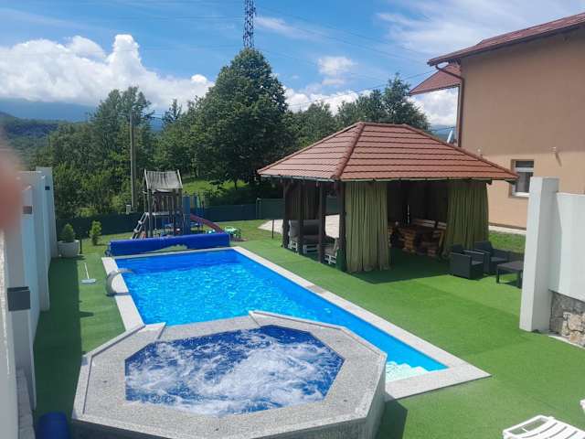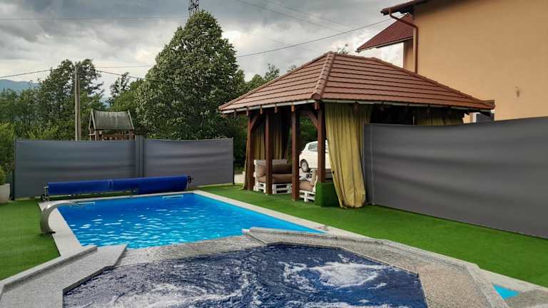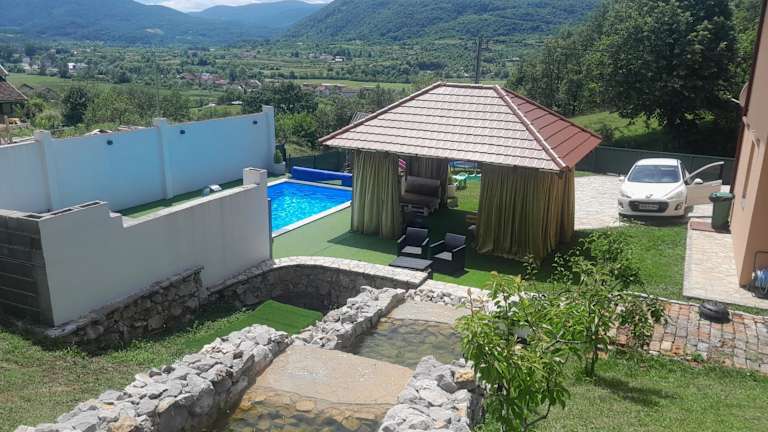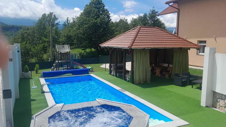Die Villa Panorama in Bihać bietet eine ideale Unterkunft nur 39 km vom Busbahnhof Jezerce - Mukinje entfernt. Mit einem saisonalen Außenpool, einem Garten und Grillmöglichkeiten bietet die Villa alle Annehmlichkeiten für einen entspannten Aufenthalt. Die geräumige Villa verfügt über 3 Schlafzimmer, ein Wohnzimmer, eine voll ausgestattete Küche und 3 Badezimmer. Ein Kinderspielplatz ist ebenfalls vorhanden. Die Villa liegt in der Nähe des Nationalparks Plitvicer Seen, der einen Besuch wert ist.