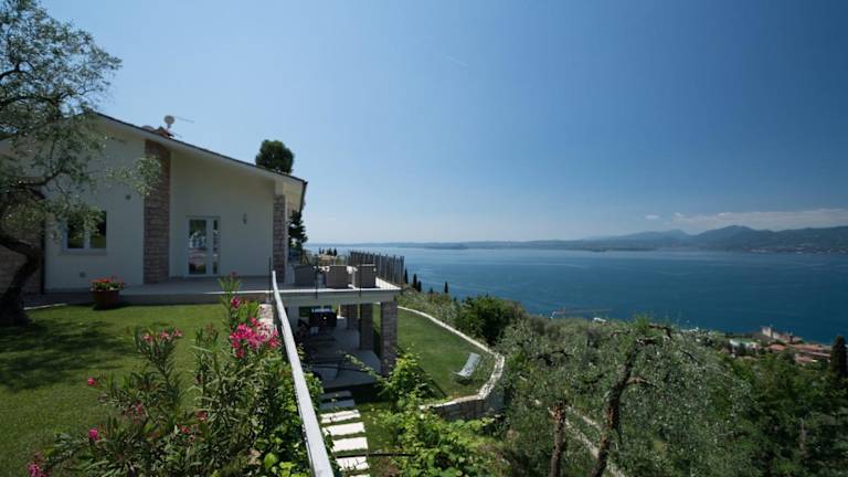 Die Villa Paola liegt in Torri del Benaco in der Region Venetien, nur 30 km von Verona entfernt. Die Unterkunft bietet eine ideale Lage, nur 14 km von Sirmione entfernt. Von der Villa Paola aus haben Sie einen wunderschönen Blick auf den See und die umliegenden Berge. In der Nähe finden Sie zahlreiche Restaurants, Bars und Geschäfte. Die Städte Riva del Garda und Garda sind ebenfalls leicht zu erreichen und bieten weitere Freizeitmöglichkeiten und Sehenswürdigkeiten.