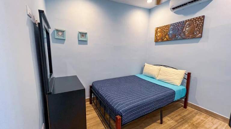 Die Villa umfasst zwei Schlafzimmer, ein Badezimmer mit Dusche, eine gut ausgestattete Küche mit Kühlschrank und Ofen sowie einen Flachbild-TV mit Kabelkanälen.